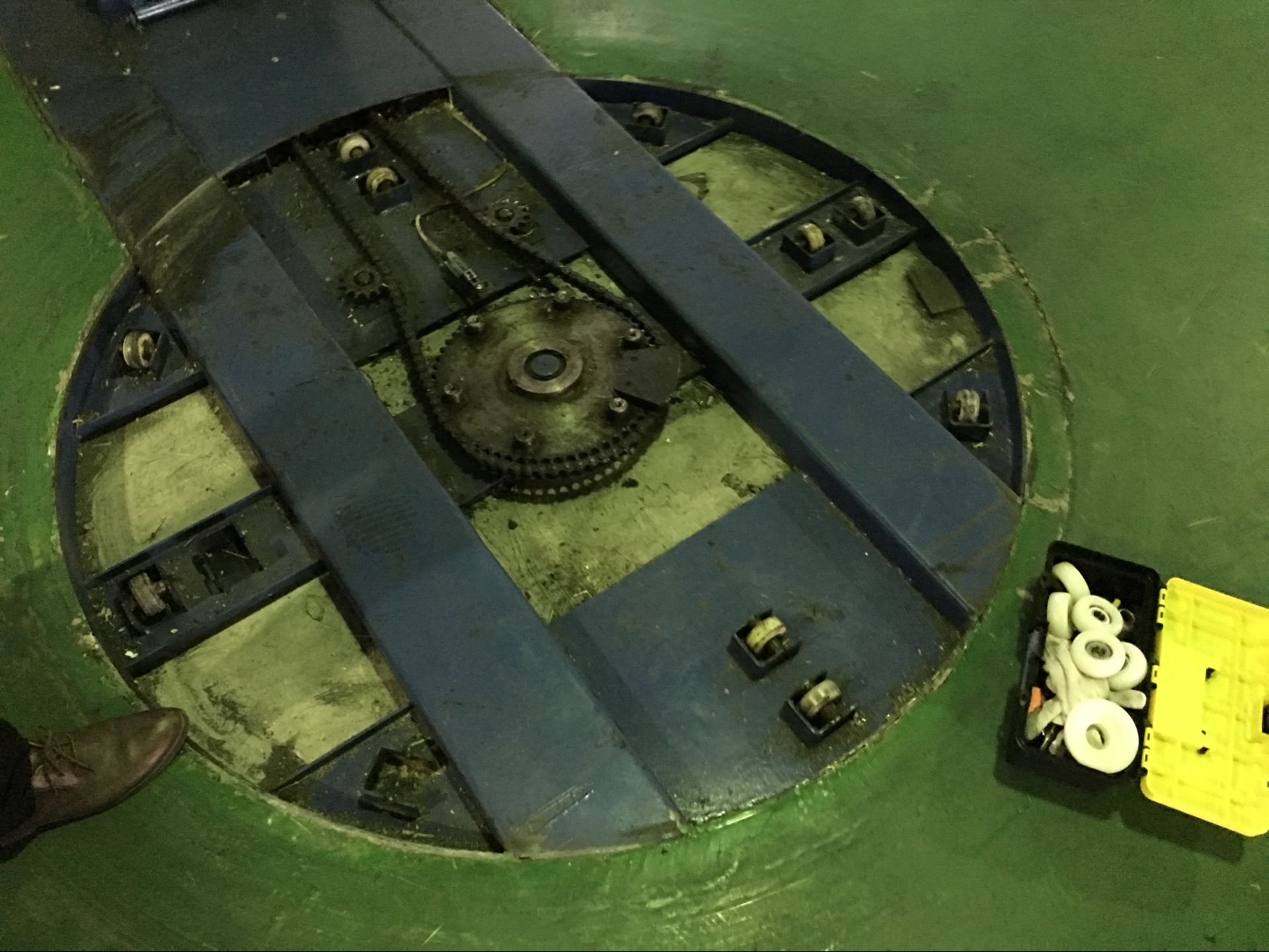 經過巨仕力工程師現場研究,機器的鐵架部分已經嚴重變形,滾輪錯位/損壞,鏈條松動,這些經過替換配件和機器整形都可以維修,最大的問題是膜架損壞較大,已經沒有維修的必要。