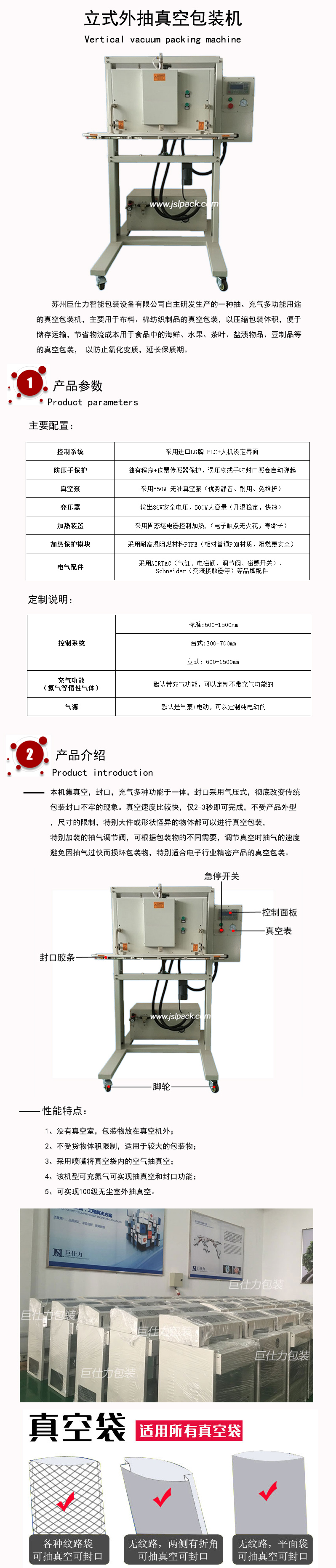 立式外抽真空包裝機(jī) 常常配合滾筒使用,適用于比較大,重的貨物的真空 包裝